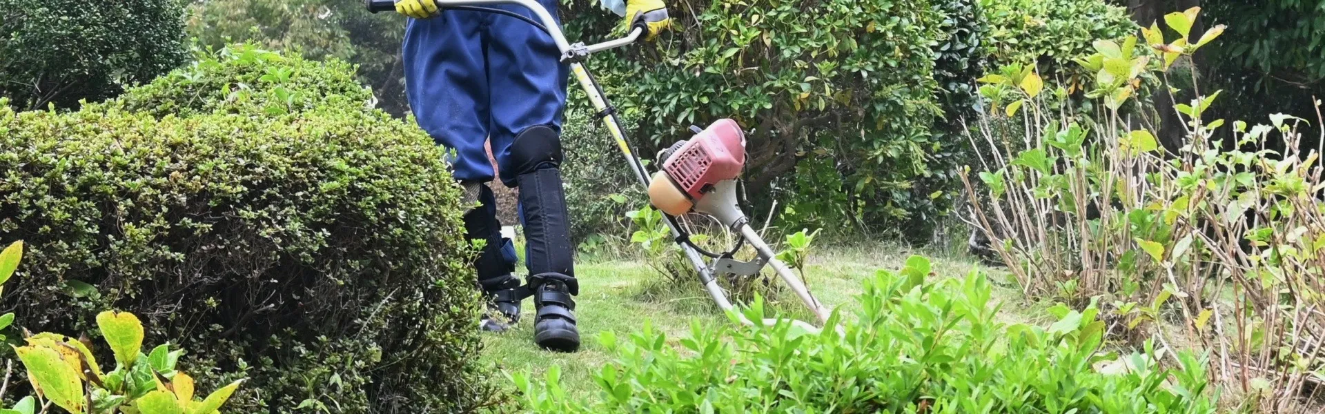 SERVICE草刈り機と防草シート、手作業でスピーディーに進める草刈り、熟練の技術を駆使する庭木の剪定や伐採など、お庭や建物周辺の環境を整え、美観を向上させるためのサービスを西三河エリアで提供して…
